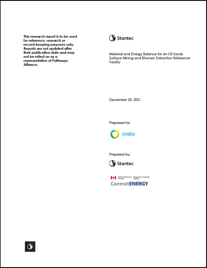 Material and Energy Balance for an Oil Sands Surface Mining and Bitumen Extraction Reference Facility
